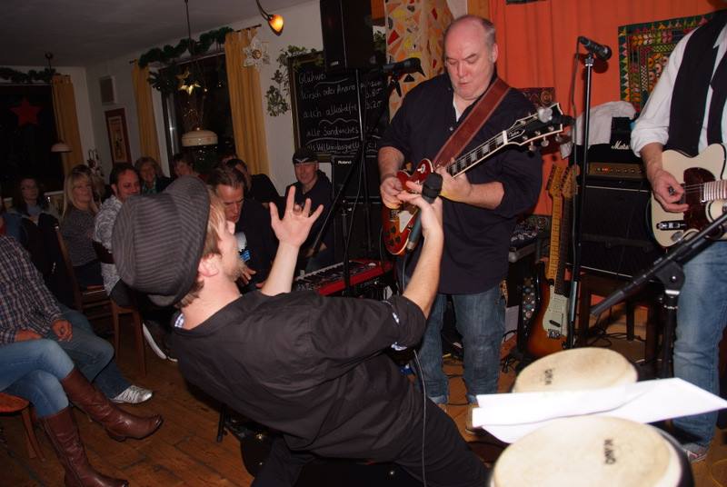 Am Samstag, den 7. Dezember 2013 fand in der "Eule" ein Benefizkonzert zugunsten der Taifunopfer auf den Philippinen statt. Es war Teil einer konkreten Hilfsaktion von Ayz Neumann (Peter Neumanns philippinischer Ehefrau), die mit den in Schongau reichlich gesammelten Spenden ihre Landsleute direkt vor Ort unterstützen konnte. Auch die "Schongauer Nachrichten" berichteten mehrfach darüber. Den musikalischen Rahmen gestalteten die Blues-Rocker der Schongauer Band "Mr. Mojoe" zusammen mit den Special Guests Ossi Becke (dr), Gerhard Kladiwa (git), Robert Rückinger (bass) und ein paar weiteren Musikern. Prima Stimmung - reichlich Spenden - gelungener Abend! |