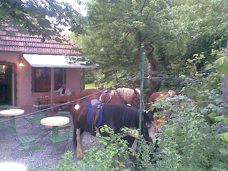 Bei den hohen Benzinpreisen im Sommer 2012 wundert man sich ja eher, dass nicht mehr auswärtige Gäste ihre Pferdchen zum Eulenbesuch satteln. Vielleicht ist das ja die Initialzündung, und schließlich hat die "Eule" ja eh schon immer so an leichten Touch von Western-Saloon, bei der großen Whisky-Auswahl, den vielen Lucky Lukes an den Dartboards und den mittlerweile weltweit gefürchteten Poker-Profis ;-) Nur an am warmen Winter-Ställchen für die Gäule haperts grad no... |