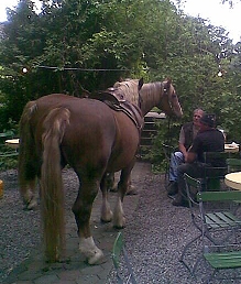 Die Raucher der "Eule" können auch bei Wind & Wetter ihrer Sucht frönen, weil der Biergarten-Stammtisch mit einer regendichten Pergola überdacht ist - richtig heimelig, solang noch'n Plätzchen frei ist...