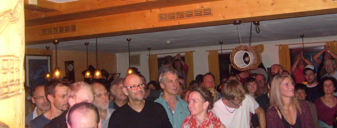 Dass die alljährlichen Waldi-Memorialkonzerte zu den musikalischen und athmosphärischen Highlights in der "Eule" gehören, hat sich längst im weiten Umkreis herumgesprochen. Und so war es auch heuer wieder rappelvoll, wobei im Publikum nicht nur die alten Freunde von Waldi († 2001) und Bernhard († 2006), zu deren Gedenken das Konzert in jedem Herbst von Josef Walter organisiert wird, sondern auch viele junge Leute mitfeierten, die die beiden gar nicht mehr gekannt hatten. Das wäre wohl auch im Sinne der Beiden gewesen, für die die Musik ein Quell ihrer Lebensfreude in einer fröhlichen, gewaltfreien Gemeinschaft war. Schließlich waren auch beide mit der Musik 'professionell verbandelt': der "Waldi" Walter Nietsche als DJ No 1 ab 1973 im "Alten Griechen" (an der Papierfabrik), später im "Neuen Griechen", in der "Eule", bei vielen Partys und Veranstaltungen; der Bernhard Gerths als herausragender Bassist in etlichen Rock- und Jazzformationen der Region (er spielte selbst noch in den Bandbesetzungen der ersten vier Waldi-Memorials mit). Und so wurde auch heuer wieder "ihre" Musik als weitgefächertes Potpourri aus Rock, Funk und Soul der 60er und 70er Jahre von Musikern aus ihrem Freundeskreis, den "Eulenspiegel Allstars", in excellenten Cover-Versionen auf die Bühne gebracht, so druckvoll und mitreißend, dass die meisten Gäste diesem 14. Memorial-Konzert übereinstimmend die Bestnote gaben. Dabei waren diesmal auch ein paar "neue" Stücke zu hören, eh kein Problem für eine Session-Band dieser Klasse, allesamt Profimusiker in verschiedenen Bands der Region, alsda: Rudi Spitzeder (git/ voc), Tim von der Heyde (git/ voc), "Pip" Thomas Härtel (bass), Elmar Zaremba (keys), Stefan Keller (drums) und Michi Waibl (drums). Ein schönes, ausgelassenes und friedliches Festerl von einem bunt durchmischten Völkchen im Eulenspiegel an diesem Freitag, den 13. November - und niemand konnte da ahnen, welcher Terror-Wahnsinn sich zur gleichen Zeit bei einem Rockkonzert und mehreren anderen Orten in Paris ereignete.