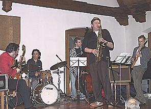 Unter dem Motto "Science Funk and Fiction Jazz" lieferten die fünf Musiker wahrhaft überirdische Klänge und begeisterten die knapp 50 Besucher. "Die Musik erinnert ein wenig an die Instrumentalstücke des jungen Zappa", urteilte Werner Friebel, zweiter Vorsitzender des lechwärts e.V., der sich zudem erfreut zeigte, einen hochkarätigen Jazzmusiker, wie den Schweizer Gitarristen Harald Haerter in Schongau zu Gast zu haben. Der 1958 in Zürich geborene Gitarrist Harald Haerter gilt in der internationalen Jazzszene als eine der großen Hoffnungen aus der Alten Welt. Unter anderem arbeitete er mit dem Star-Saxophonist Michael Brecker zusammen, mit dem er 1997 auf Europatournee ging und 1999 eine internationale Konzertserie bestritt. 1985 gründete er seine Band "Intergalactic Maiden Ballet", welche mittlerweile zu den wichtigsten Electric-Jazz-Combos gezählt wird. In der Folge arbeitete er mit Leuten wie John Zorn, Lee Konitz, Eddie Harris und Dave Liebmann, um schließlich 1994 zusammen mit Dewey Redman sein sensationelles Quintett zu gründen, mit dem er bis heute weltweit über 150 Konzerte gespielt hat.