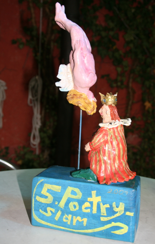 Martin Uckley aus Weilheim, der vor zwei Jahren schon einmal die Trophäe, ein von Stefan Walter gestaltetes "Winnie pur"-Engerl, mit nach Hause nehmen durfte und im letzten Jahr Platz drei errang, präsentierte sich von einer völlig neuen Seite. Schnörkellos erzählt, ließ er im Dialog zwischen dem Zivi Jonathan und der zu pflegenden Frau Krumbichler, Kriegsdienstverweigerer und Kriegsopfer aufeinanderprallen. Was sich zu einem ergreifenden Plädoyer gegen Gewalt und Krieg auswuchs. Die Schongauerin Alena Tkatschenko, die im letzten Jahr Zweitplatzierte, schrieb sich mit ihrem Monolog "Aus dem Leben einer Wahnsinnigen" wieder einmal souverän aufs Siegertreppchen. Und das, obwohl sie zu Beginn tiefstapelte, es sei ihr dieses Mal "nicht wirklich was Tolles" eingefallen. Christel Steigenberger alias "La Kritzolina" aus München war bereits das zweite Mal dabei und übte sich mit ihren Gedichten "Von der anderen Seite der Straße" im Fokussieren. "Im Bruchteil von Sekunden, gedehnt und in einer Endlosschleife" schuf sie eindringliche und ausdrucksstarke sprachliche Bilder. Aneta Celina Lazor aus Apfeldorf, ebenfalls zum ersten Mal auf einer Poetry-Slam-Bühne, glänzte mit einer gelungenen schauspielerischen Darstellung. Ihr nachdenklicher und leidenschaftlich dargebrachter Text kreiste um die Frage: "Bin ich nützlich?" Im Gegensatz dazu die absurden, mit schwarzem Humor gespickten Geschichten vom Schongauer Josef Walter, die sich um einen Verkehrsunfall sowie ein kleptomanisches Känguru drehten und den Besuchern ein Schmunzeln aufs Gesicht zauberten. Als Urgestein und "Sprüchklopfer vo Soien" angekündigt wurde Josef Bassetti. Seine nicht unkritische Geschichte kreiste um eine alte Dampflock und Rentner, die gleichermaßen unrentabel geworden, von der Gesellschaft ausrangiert nur noch so "umeinander standerten". Ein abwechslungsreicher und sehr unterhaltsamer Poetry-Slam also, bei dem die Zuhörer voll auf ihre Kosten kamen. Zumal Tim von der Heyde (Gitarre) und Reiner Uhl (Bass) den Abend virtuos musikalisch umrahmten.